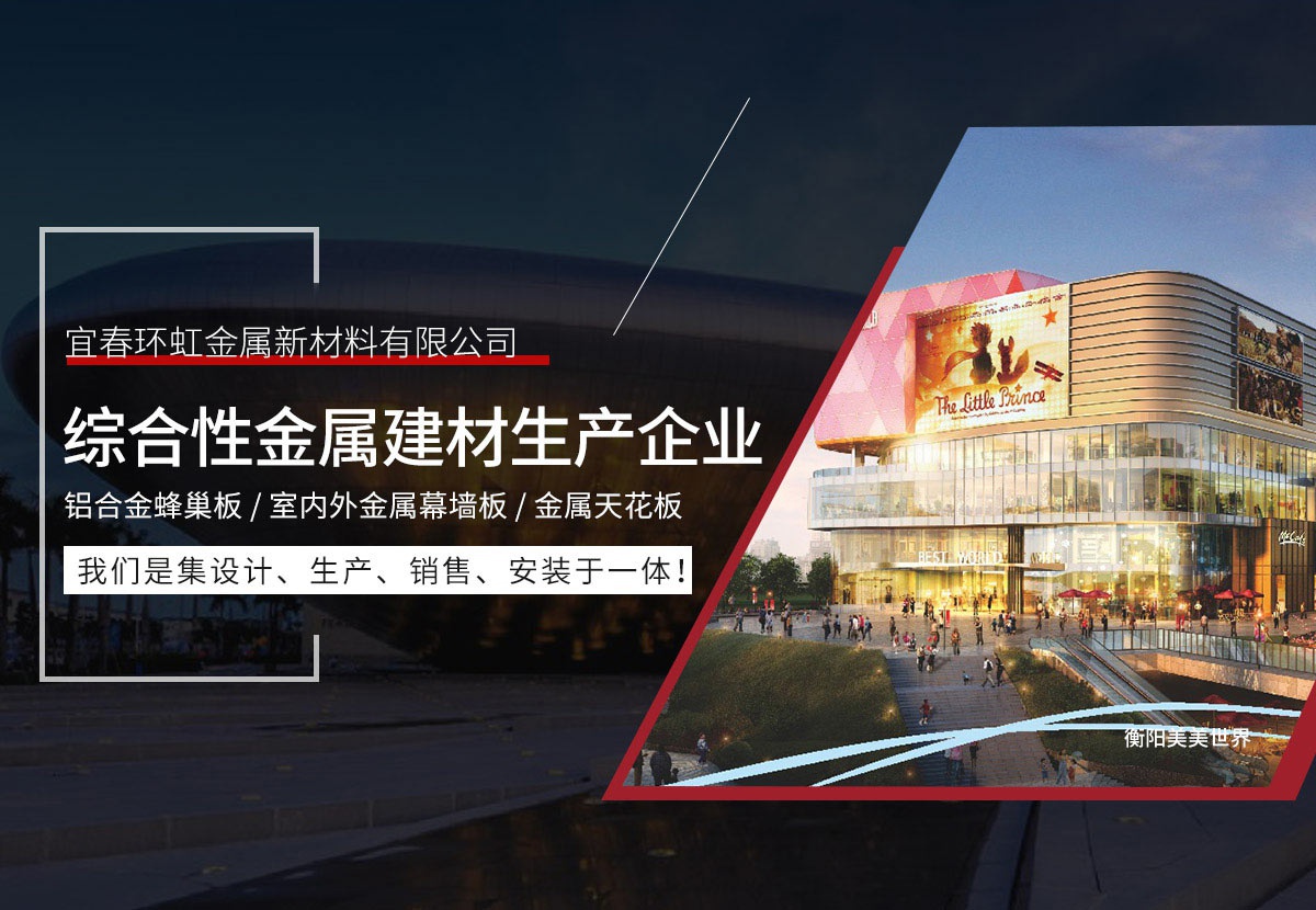 宜春環虹金屬新材料有限公司總部位于廣東省佛山市創立于2011年。公司建設有高標準的現代化工業生產廠房及完備的生活配套設施,是一家生產鋁單板、鋁合金蜂窩板、室內外金屬幕墻板、金屬天花板等新型建筑裝飾材料的現代化企業。從產品設計到生產檢驗、施工安裝及服務都嚴格按照ISO09001和ISO14001 2015質量與環境保證體系實行嚴格的控制和管理,并著力為客戶提供優良的個性化服務和相關解決方案。公司擁有一批高素質、高水平的...